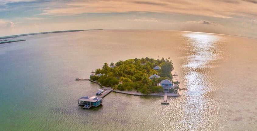 - Round-trip private helicopter transfers from Belize City with a scenic tour of the Belize Barrier Reef before landing directly on the island.
